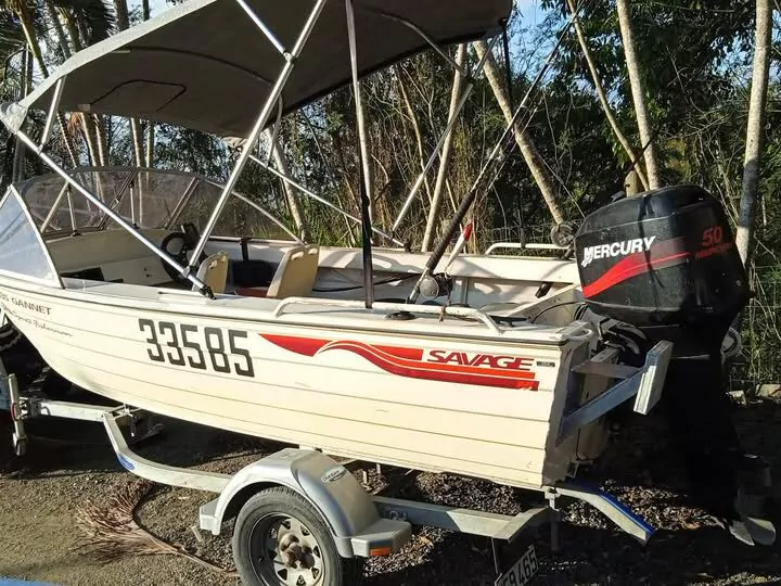 À vendre sur Bourail, bateau savage, 4m35, moteur Mercury 50 CV, état impeccable, remorque neuve.