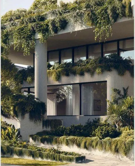 Les Façades végétalisées luxuriantes et la fontaine centrale offrent un accueil apaisant aux résidents et visiteurs