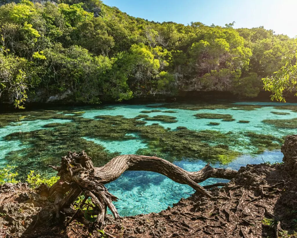 Au cœur de l’île, un trou d’eau douce caché dans la forêt invite à la détente et à la découverte de la culture kanak, le peuple autochtone de Maré.